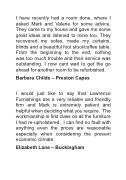 I would just like to say that Lawrence Furnishings are a very reliable and friendly firm and Mark is extremely patient and helpful when deciding what you require. The workmanship is first class on all the furniture I had re-upholstered. I can find no fault with anything even the prices are reasonable especially when considering the present economic climate.